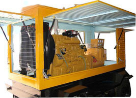 盂县柴油发电机组/移动柴油发电机组设计独具创新,机动性高、重心低、制动安全、制造精良、外形美观。 盂县拖车车架采用槽梁焊接成框架结构,节点选择合理、强度高、刚性好;同时装有钢板弹簧悬架结构;拖车采用高度可调节插销式牵引架,适用于各种高度牵引车;采用圆形钢管焊接直通式车轴,结构紧凑,安全可靠;车架四角设有机械式支撑装置,配备惯性行车制动、驻车制动和脱离应急制动,确保机组在各种状况下的安全;车架前端设有支撑轮,具备承受机组垂直载荷的功能的同时还具备导向功能;整车配备转向和刹车指示灯,同时装有尾灯标准插头